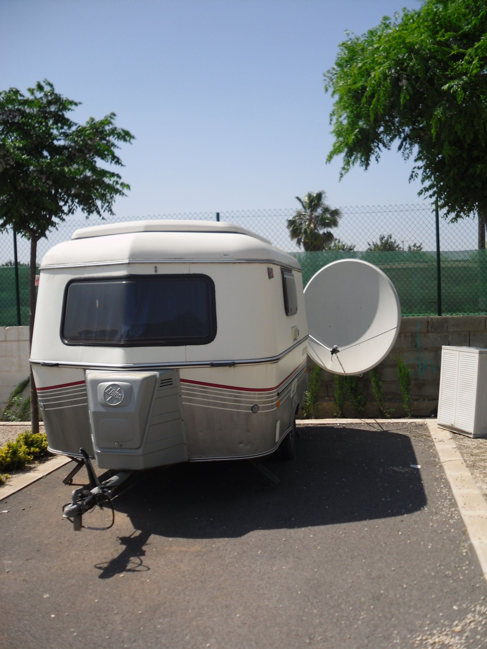 Anders dan de aanhef doet vermoeden heeft dit onderwerp niets te maken met de al dan niet aanwezige culinaire talenten van onze TCCers, al lijkt het onderwerp veel op een gekantelde scottelbraai. Is het u niet opgevallen dat het ‘s-morgens vaak onrustig is op de reisdagen van de TCC.? In mijn naïviteit dacht ik aanvankelijk, dat sommige deelnemers- begrijpelijk-, wat opzagen tegen het reizen in het buitenland. Maar dat bleek toch iets anders te liggen. Een nerveuze spanning is duidelijk voelbaar op het terrein, gemarkeerd door het testen van de walki talki: "Hallo hoor je mij? Hebben we verbinding? Het lijkt wel een echoput! Óh sorry, het was mijn gehoorapparaat. Nee, je moet de sleutel (zendknop) loslaten als je mij wil ontvangen, anders blokkeer je de lijn!”. Een jargon dat voor reislustigen onder ons herkenbaar is. De achterlichten van de als eerst vertrekkende reisleiding zijn nog niet uit het zicht , verdwenen of een zoemend geluid van alle kanten dringt zich op en verstoort nu echt de ochtendrust op, de camping. Eigen Huis en Tuin nu ook al op de camping met de campingstraat van de week? Nee hoor, ik kan het verklaren. Met het zoemend geluid, afkomstig van de accuboormachines worden in ijltempo de uitdraaisteunen van de caravan ingedraaid. Sommige deelnemers lijken wel gegrepen door een plotseling onverklaarbare onrust. Vanaf nu is het nog slechts een kwestie van minuten of de eerste combinaties spoedden zich in ijltempo het campingterrein af, op weg naar de volgende pleisterplaats. Onderweg is vrijwel geen aandacht voor het landschap. highligts worden achteloos genegeerd, de koffie en de lunch worden staande gebruikt. Met een verbeten blik worden de aanwijzingen van de TOM TOM strak gevolgd, zoals de leerling zijn meester. Geldt "Time is money” dan nog steeds voor deze rakkers? Of zou er toch iets anders aan de hand zijn? Uiteindelijk aangekomen op de volgende camping ( tot mijn stomme verbazing soms nog eerder dan de kwartiermakers). Ik zie ,wachtend in een rij bij de receptie,dat de partners reeds de auto verlaten.Hoge nood? Ja en nee. Als bedoeld wordt een sanitaire onderbreking: nee. En ja?: Om te voet reeds een plekje te zoeken en bij goedkeuring midden op te gaan staan. Zoals een automobilist die een parkeerplek heeft gezien en zijn vrouw erop laat staan met de boodschap: " Dit is onze plek en hier ga ik parkeren” . Het wordt nu echt spannend op de camping. De caravans staan nauwelijks op hun plek als de bagageluiken worden open getrokken. Geen stoelen en tafels die naar buiten komen, maar satelieten astrakoppen lange witte snoeren stekers en een uit de hand gelopen scottelbraai op standaard. " Heb jij al wat? Hmm, kan beter. Ik begrijp het niet.Waar is het noorden? ” En steeds die speurende blik schuin omhoog in de richting van de boomtoppen. Of UPC momenteel de camping beheert!. De kabels krullen zich als witte slangen over de plaatsen om ergens in de caravan te verdwijnen. Een enkele gelukkige, zien we met een superieur lachje om de mond, zijn automatische patriot- raketachtige installatie op het dak, de opdracht geven om een satelliet te schieten. De anderen (minder bedeelden), met de losse schotels en de lange snoeren, richtten de schotels millimeter voor millimeter. Het gepiep is niet van de lucht en het zijn zeker geen veldmuizen. Tegelijkertijd klinken er uit de caravans ook merkwaardige klanken. ” nee, nee, nee, ja, nee, terug, opnieuw, stop. Ja ik weet het ook niet meer hoor, kom zelf maar kijken!”