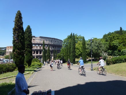 We gaan in Rome op fietsexcursie wat een belevenis de gidsen weten precies hoe ze ons door het soms drukke verkeer moeten loodsen maar we zien op deze manier alle hoogtepunten op 1 dag.